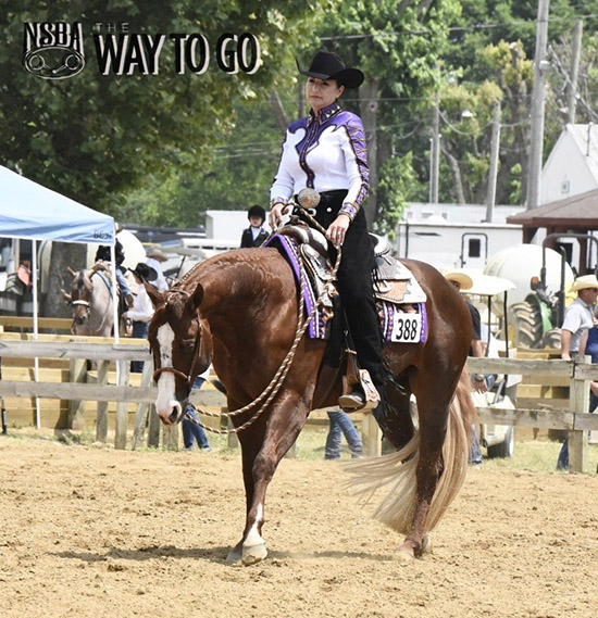 Dark Ladie took Shannon Curl Holbin to a first place finish in the $5,000 Added Limited Open Three Year Old Western Pleasure, with the duo earning $2,550 for owner Haley Purkapile.