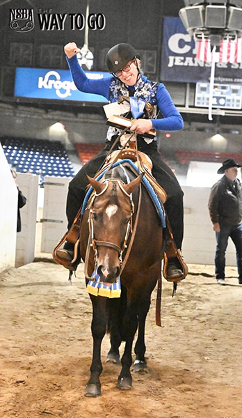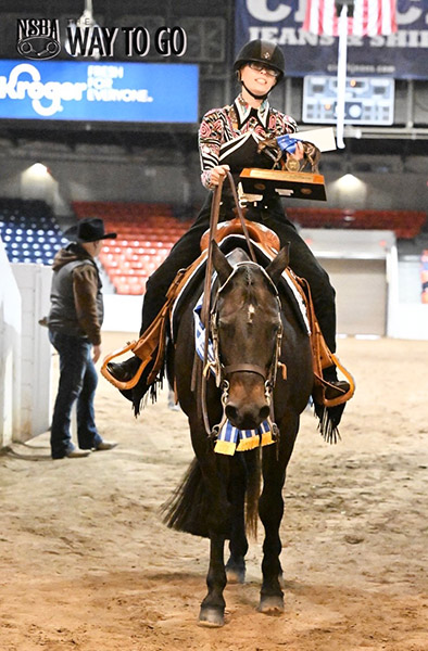 This was Matty’s first Congress championship. “I was reserve champion last year in the Trail and fourth in Western Pleasure,” he said. “We are from Vernon Hills, Illinois, so we can a long way to get here. We’ve been coming here for about three years. I started riding when I was three years old and I’m going to be 15. I love working with the horses. I work around the barn too in the works skills program at my barn, Partners For Progress.”